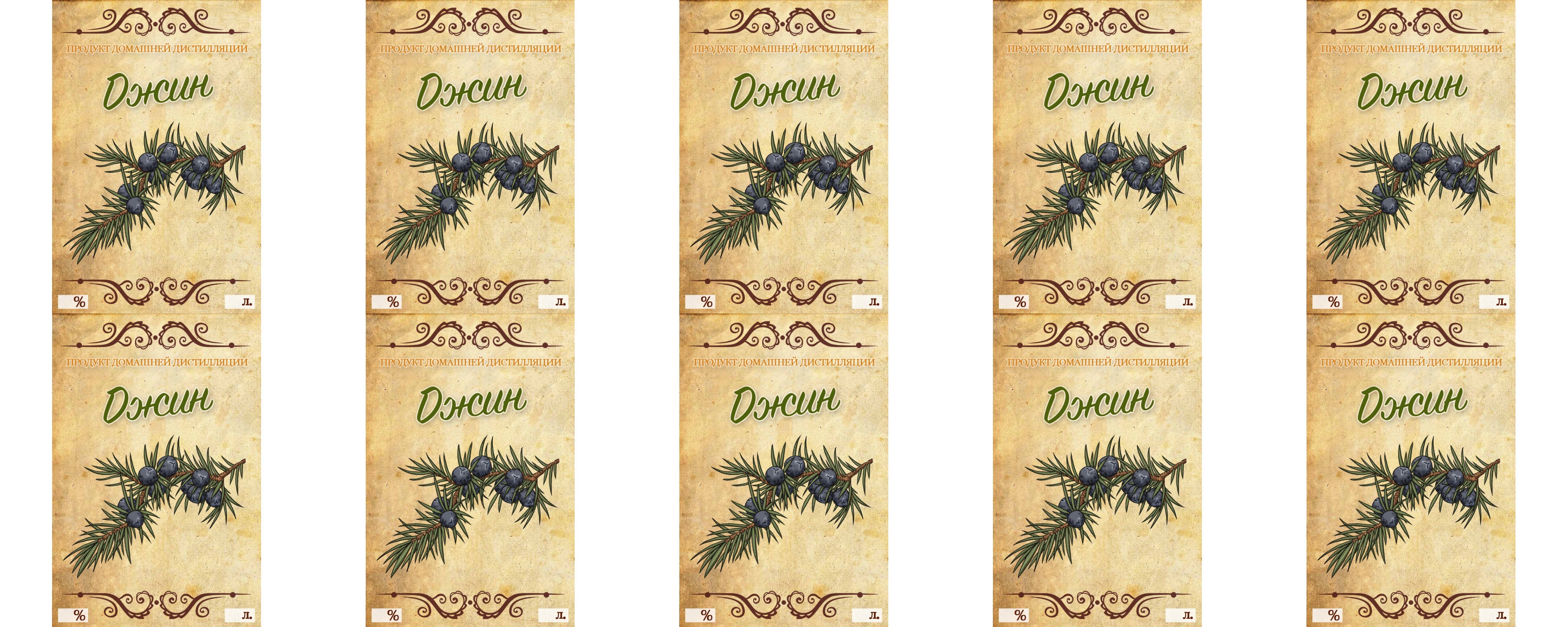 Этикетка на бутылку Домашняя "Джин", 10 шт