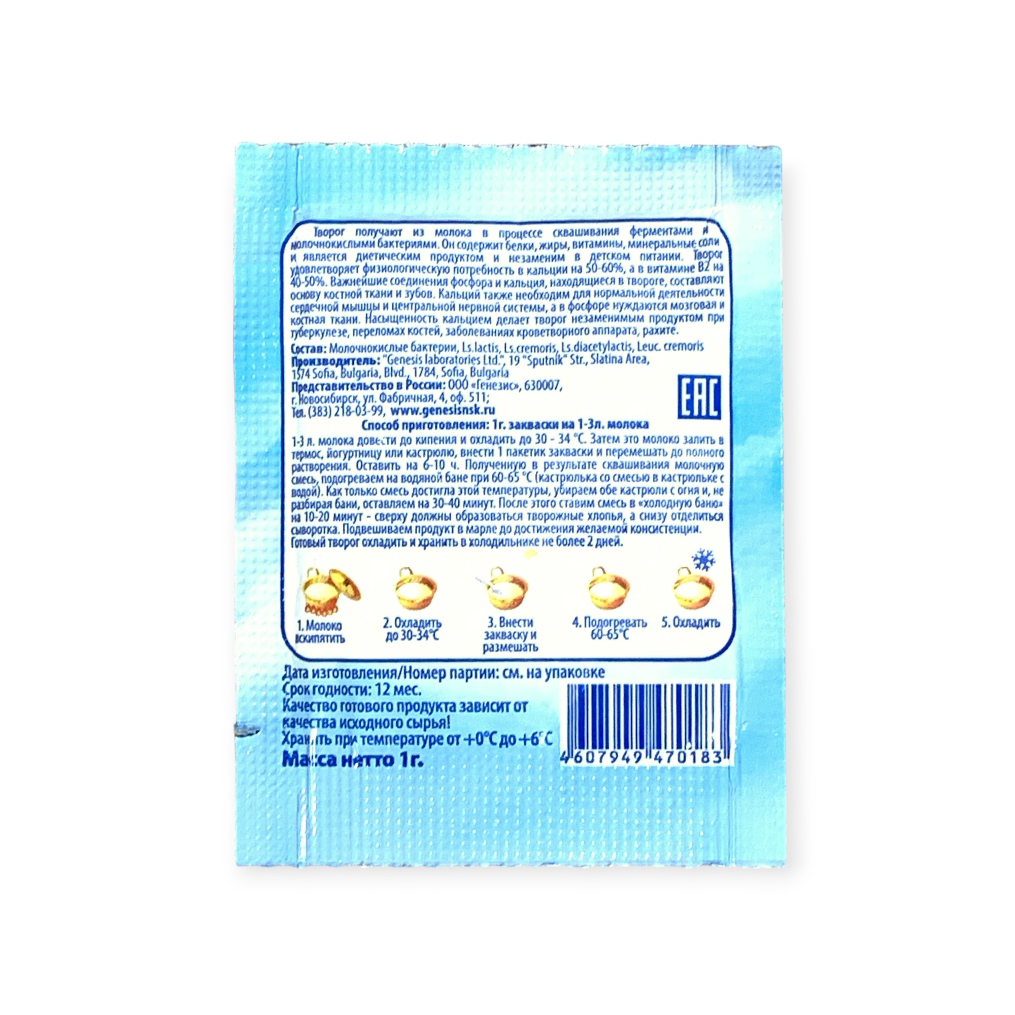 Закваска Творожок Genesis, 1 пакет от 100 руб. с доставкой. Пункт выдачи в Щёкино. Интернет магазин по сыроделию. Всё всегда в наличии.